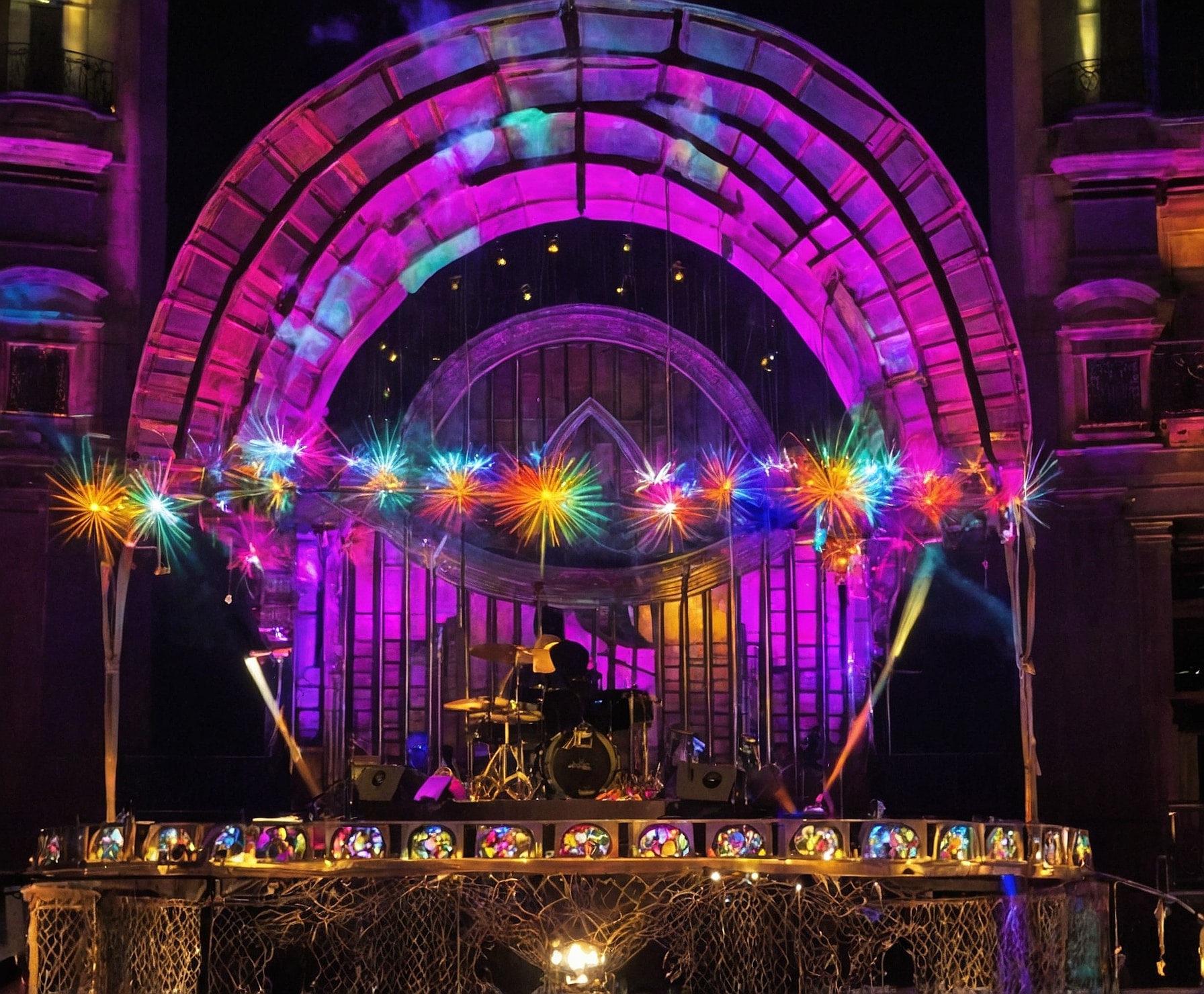 Arte en escena y luces vibrantes